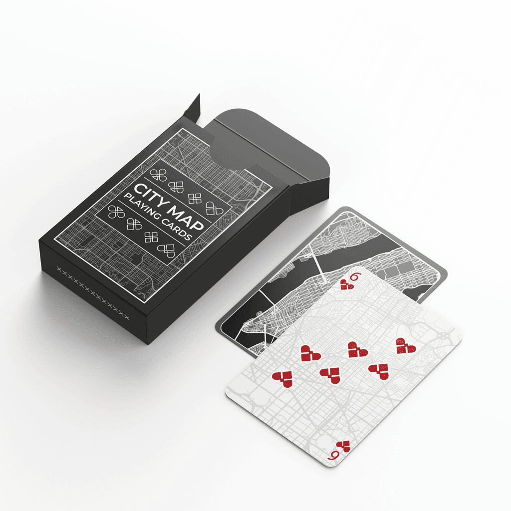 Product Details: The “Playing Cards – City Map” deck contains 54 unique cards, each featuring a different city map from around the world.
